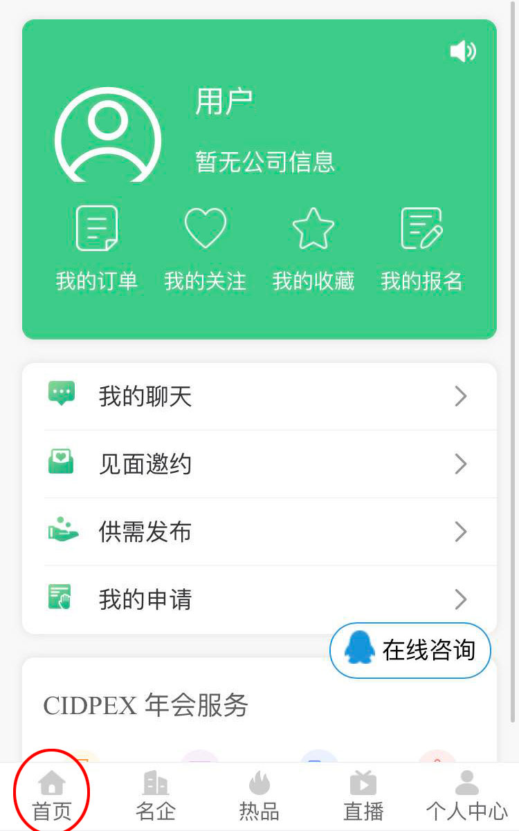 二、登錄進(jìn)入個(gè)人中心后點(diǎn)擊左下角“首頁(yè)”返回“首頁(yè)”