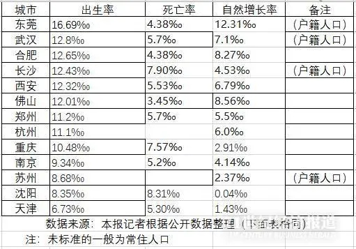 其中,東莞最能生,統(tǒng)計(jì)公報(bào)顯示,2019年,東莞年末全市戶(hù)籍人口251.06萬(wàn)人。全年出生人口4.03萬(wàn)人,出生率為16.69‰;死亡人口1.06萬(wàn)人,死亡率為4.38‰;人口自然增長(zhǎng)率為12.31‰。