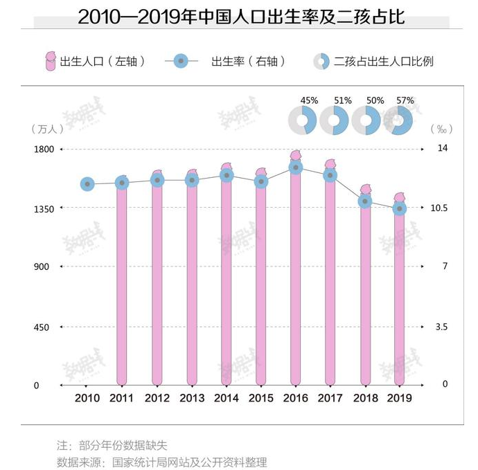 2017年,我國(guó)出生人口數(shù)量達(dá)到1723萬(wàn)人,其中二孩占比達(dá)到51%,首次超過(guò)一孩。截至2019年,二孩數(shù)量已經(jīng)連續(xù)三年占據(jù)出生人口數(shù)量的一半以上。.png)
