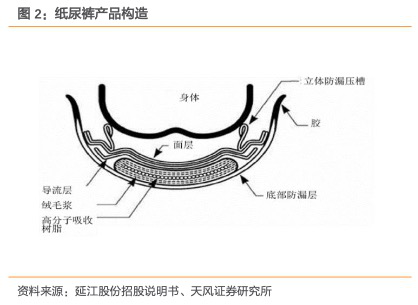這些面層材料中,非常重要的除了導(dǎo)流層的打孔無紡布,還有更柔軟、親膚性好、在亞太地區(qū)占有較高市場份額的熱風(fēng)無紡布。目前中國主要的熱風(fēng)無紡布生產(chǎn)商有延江股份、北京大源、睿智三家公司,其中睿智為日本JNC在華獨(dú)家企業(yè),延江股份為行業(yè)龍頭。