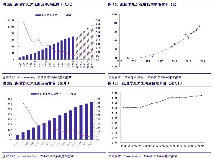 目前市場競爭格局的變化說明我國嬰兒衛(wèi)生用品市場尚未成熟,仍存在發(fā)展的較大空間,在消費升級和市場體量擴(kuò)張下外資企業(yè)和國內(nèi)新銳企業(yè)都有規(guī)模增長、擴(kuò)張市場份額的機(jī)會。短期內(nèi)我國嬰兒衛(wèi)生用品市場的行業(yè)集中度可能不會快速回升,新銳品牌的加入推動了產(chǎn)品升級也給行業(yè)帶來了活力和更多競爭,國產(chǎn)品牌具有本土化的電商營銷能力與新渠道把控力,以及適應(yīng)性更強(qiáng)的新品迭代能力,因此和外資品牌的拉鋸戰(zhàn)可能會持續(xù)進(jìn)行。長期來看,參考女性衛(wèi)生用品市場的發(fā)展路徑,市場成熟后外資品牌的品牌效應(yīng)會逐步顯現(xiàn),未能成功樹立品牌影響力的國產(chǎn)新銳品牌或?qū)⒅鸩酵顺鍪袌?,行業(yè)屆時將再次向龍頭集中聚攏。