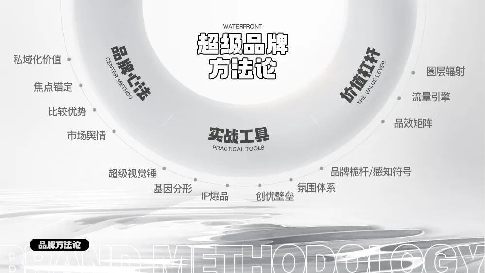 作為中國生活消費(fèi)品行業(yè)品牌管理服務(wù)商,立足于行業(yè)市場洞察和發(fā)展趨勢,在水一方潛心多年自主完善并建立了企業(yè)品牌方法論,重點(diǎn)圍繞品牌心法、實(shí)戰(zhàn)工具及價值杠桿構(gòu)建出全案品牌系統(tǒng)。